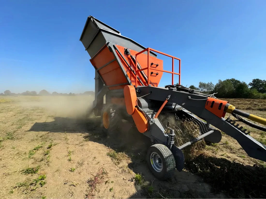 Podbieracz wykonany został ze stali o grubości 6 mm i większej, co zapewnia jego wysoką trwałość oraz odporność na uszkodzenia. Długie, podwójne palce efektywnie podają masę roślinną, a ich szybka wymiana – dzięki łatwemu dostępowi od tyłu – minimalizuje czas serwisowania.